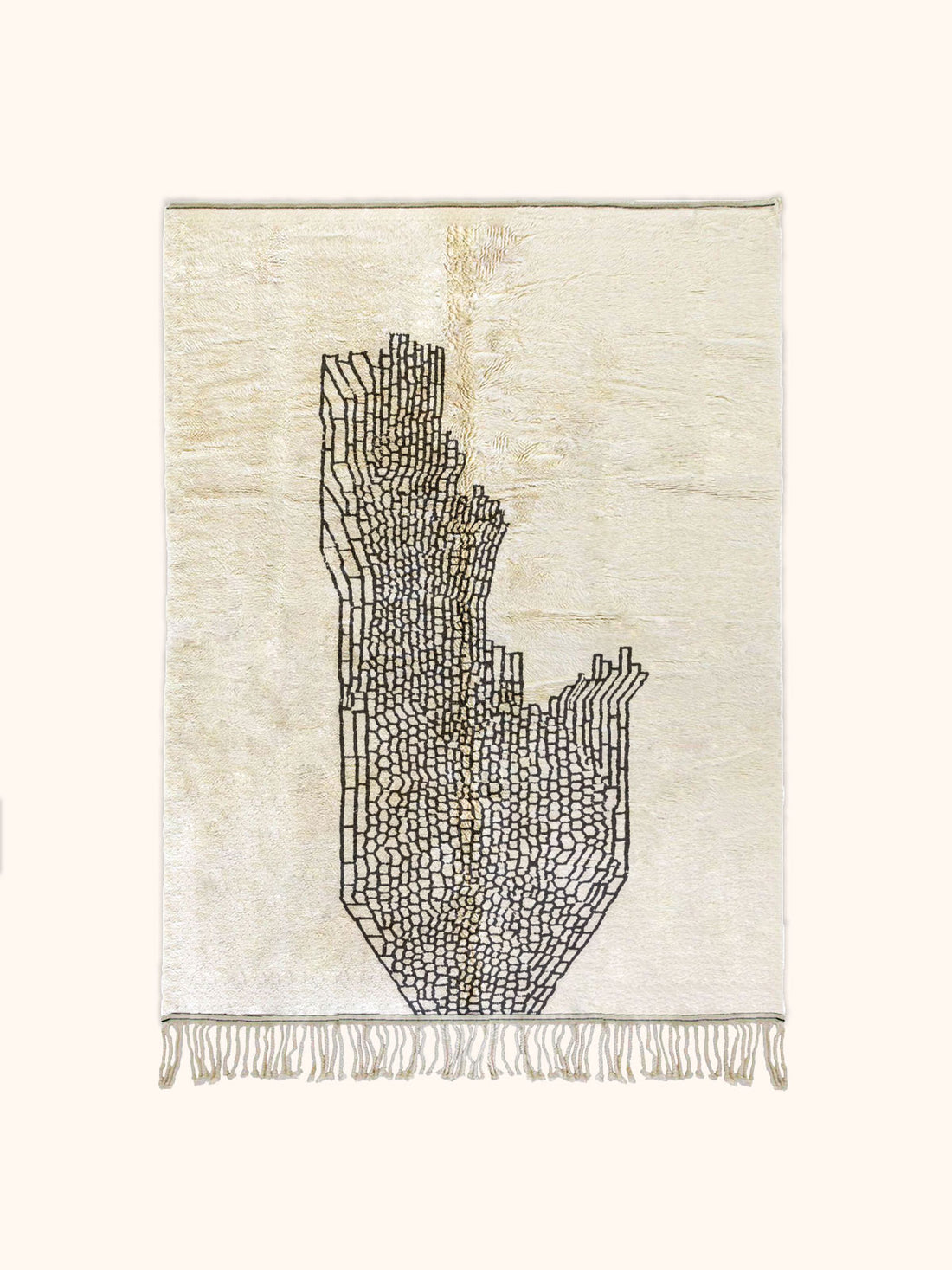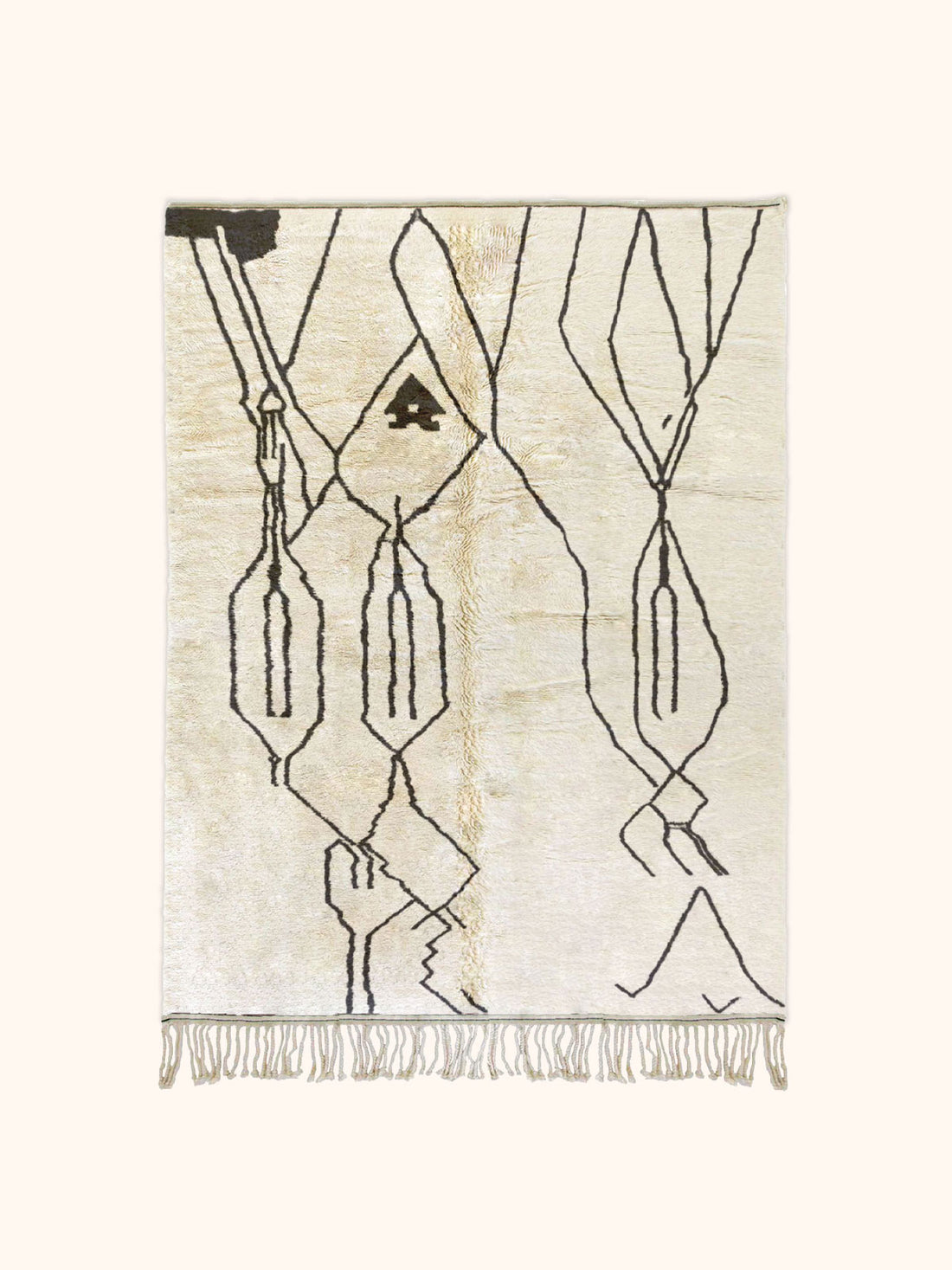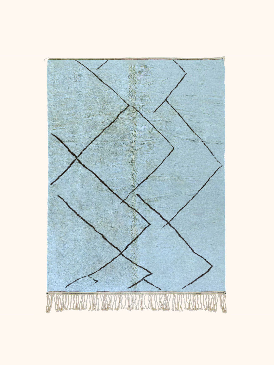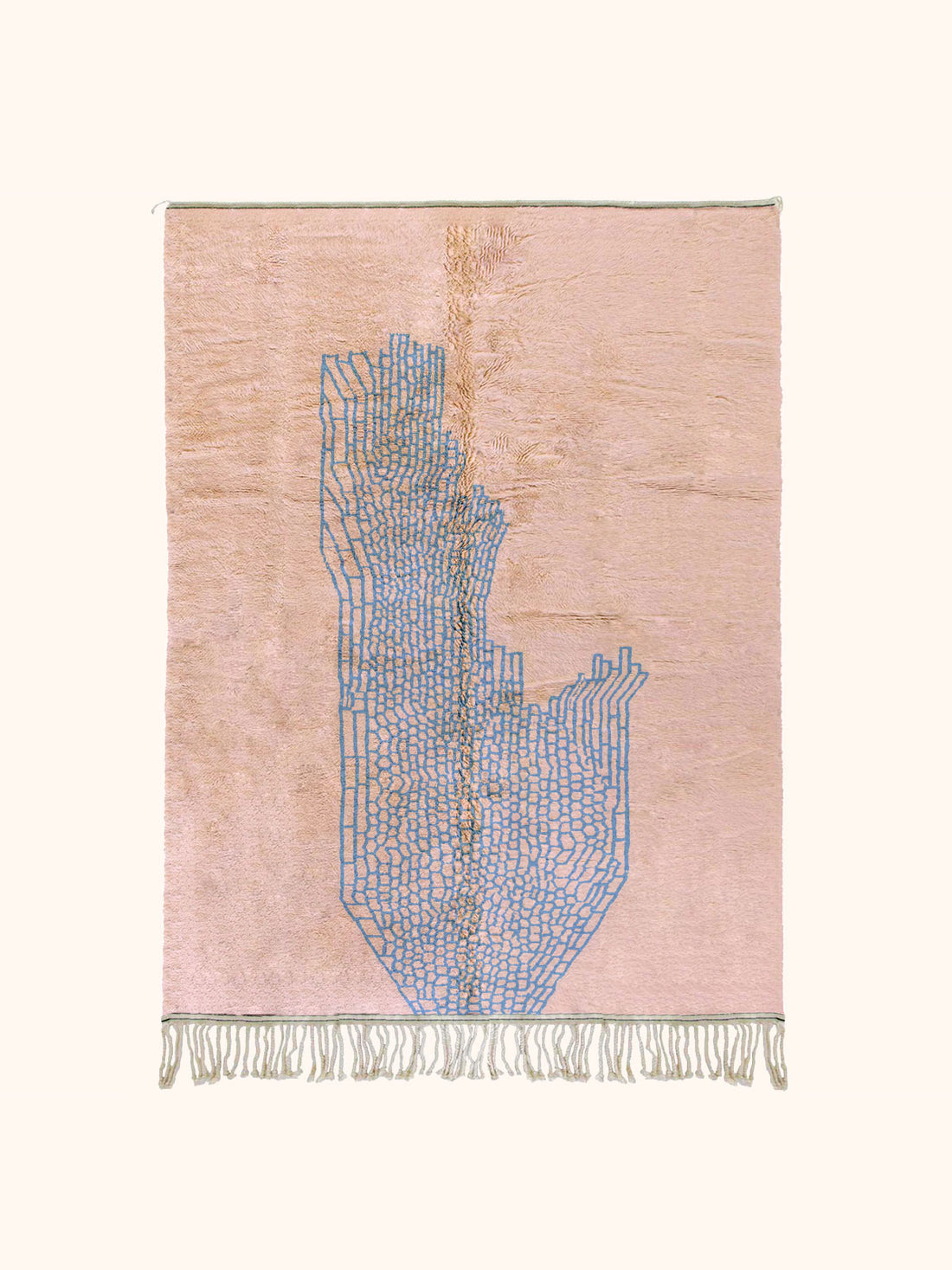 Airy and light, Tilila invites openness. With uncluttered lines and soothing tones, it’s a breath of fresh air—a rug that evokes the wide skies and wild landscapes of the High Atlas.
