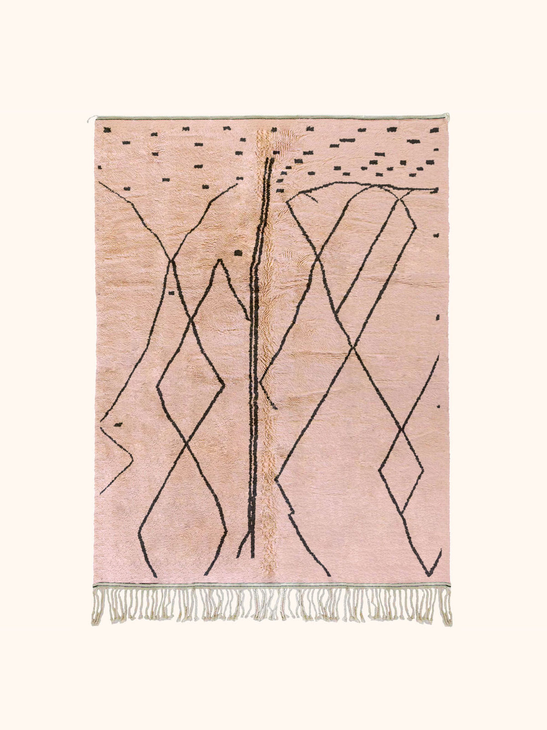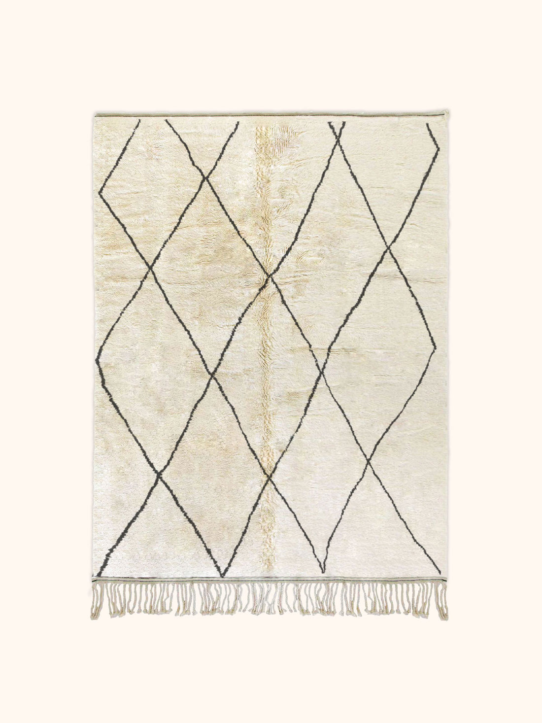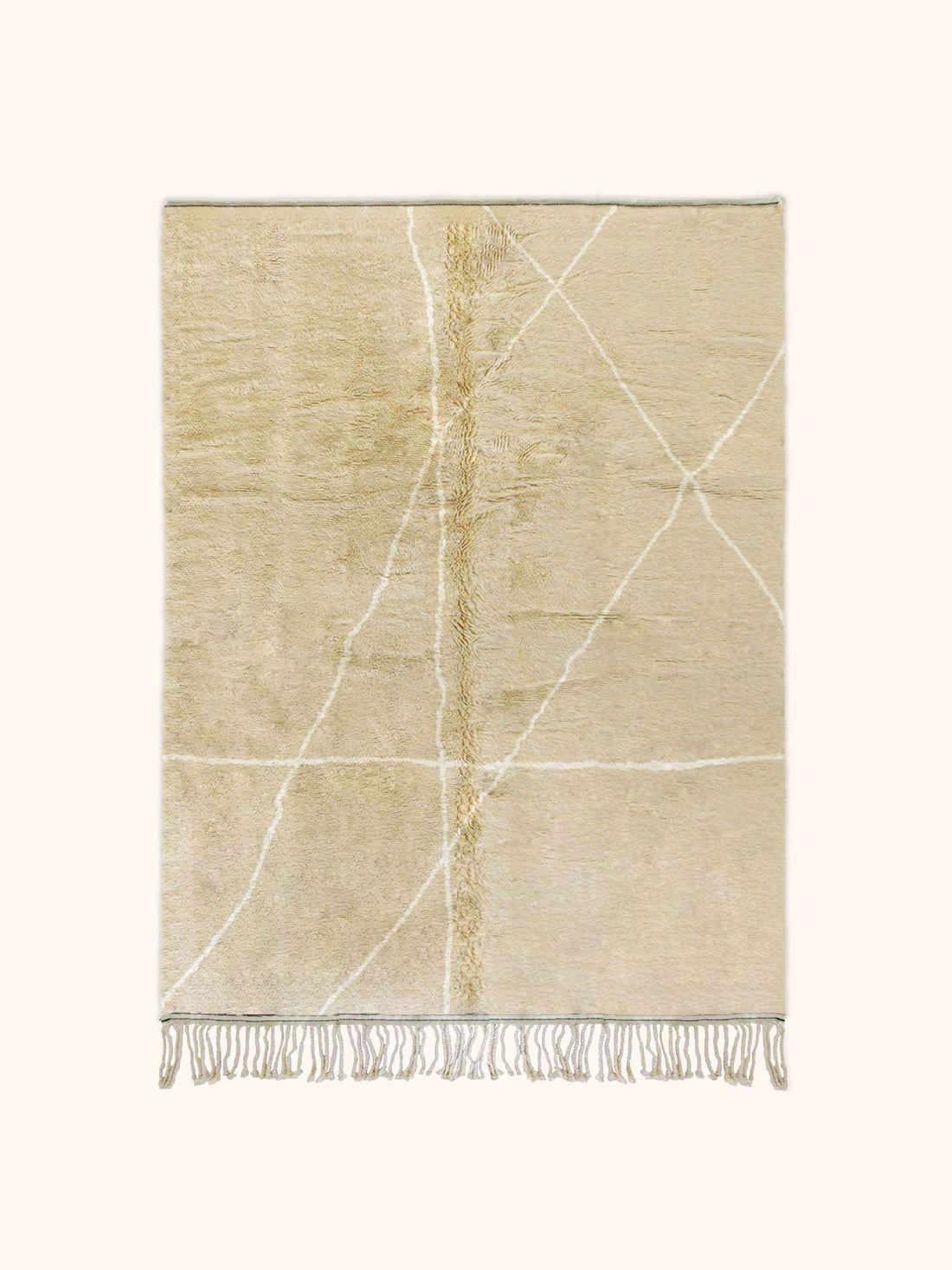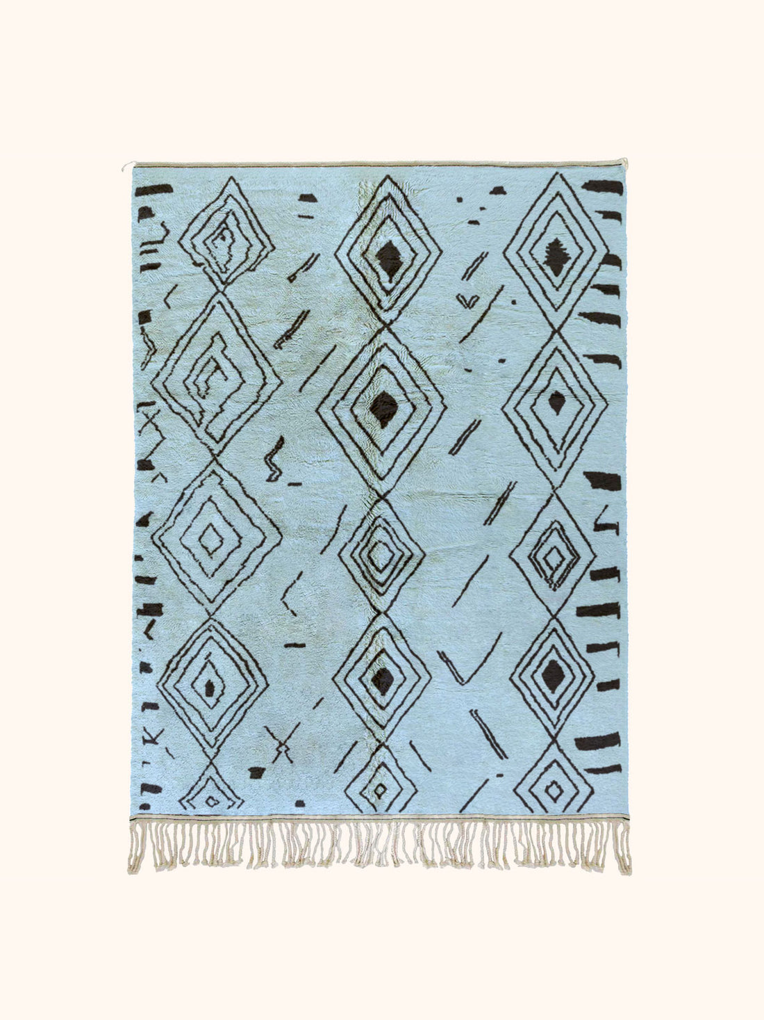Airy and light, Tilila invites openness. With uncluttered lines and soothing tones, it’s a breath of fresh air—a rug that evokes the wide skies and wild landscapes of the High Atlas.