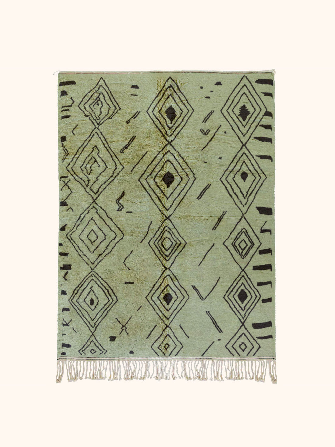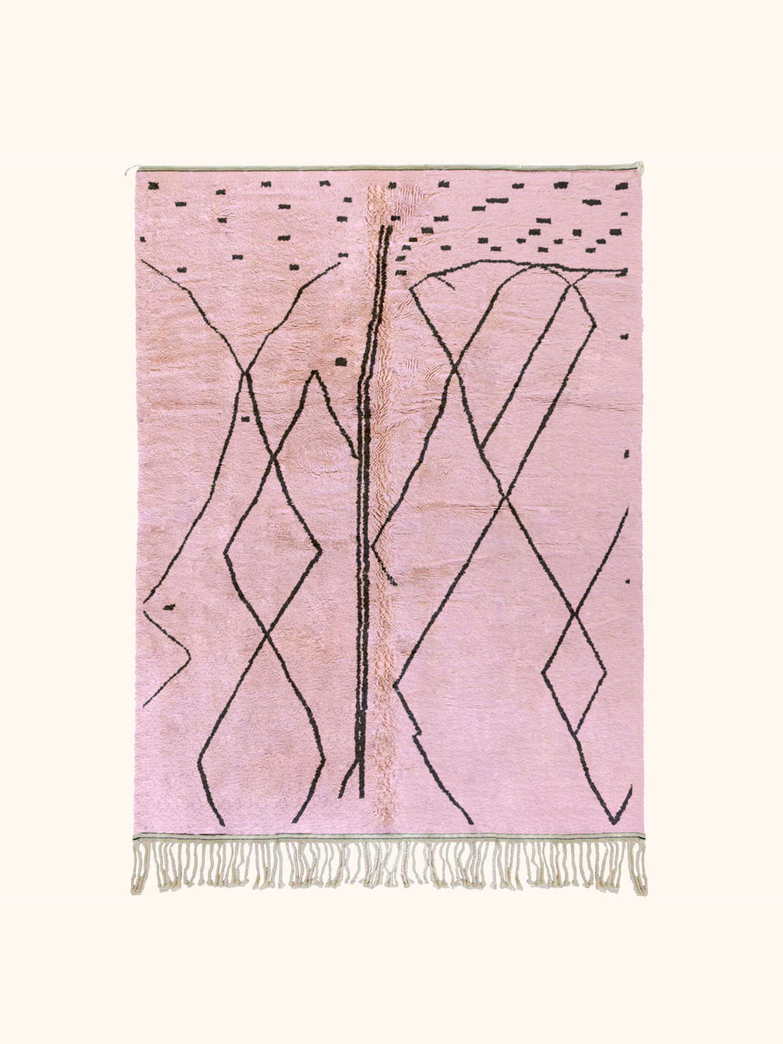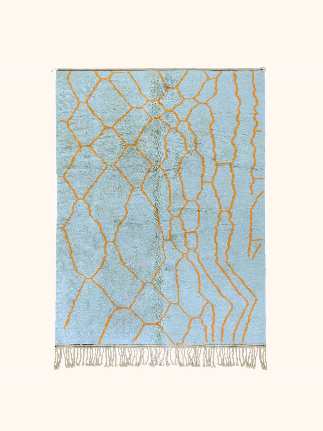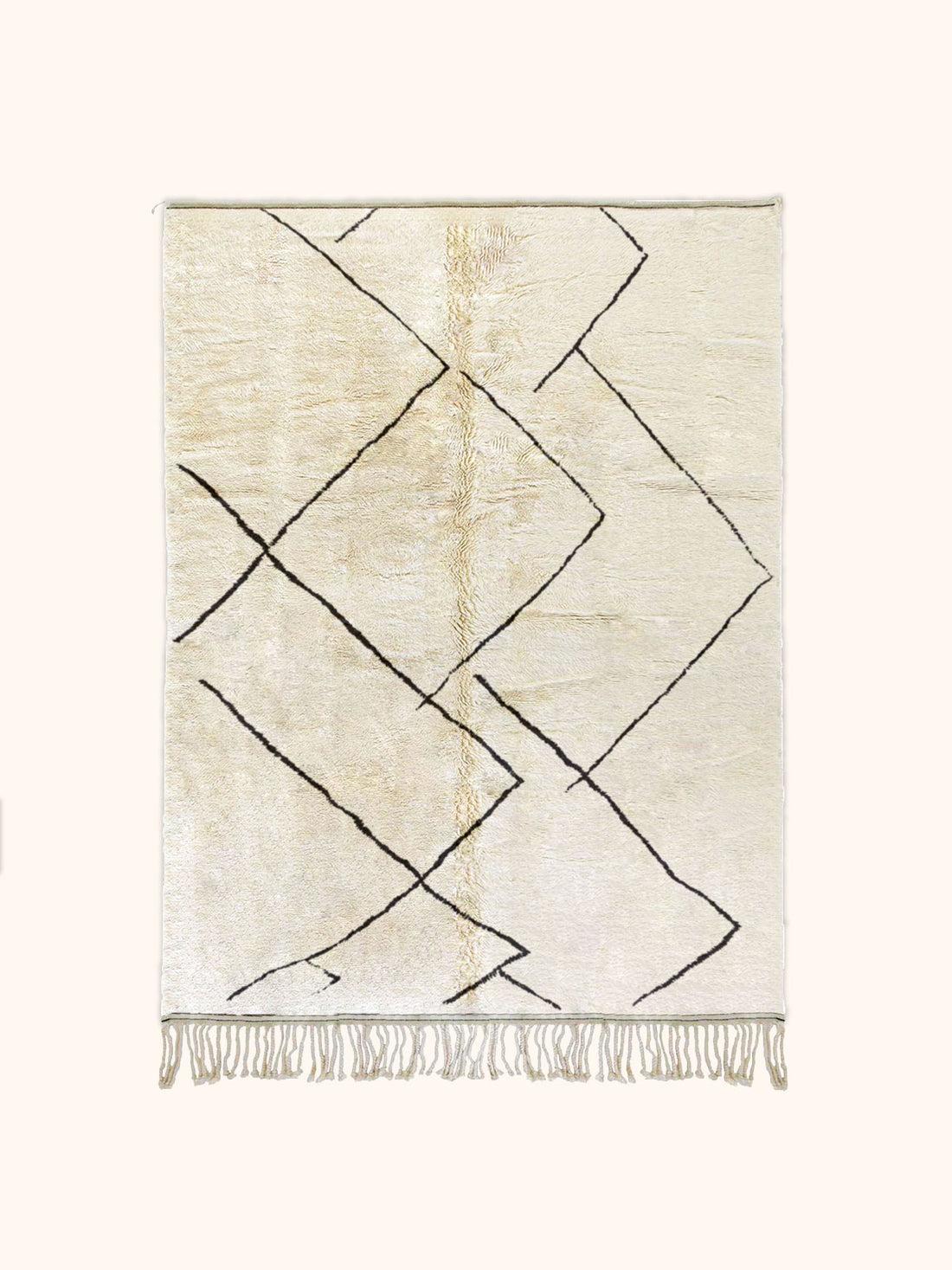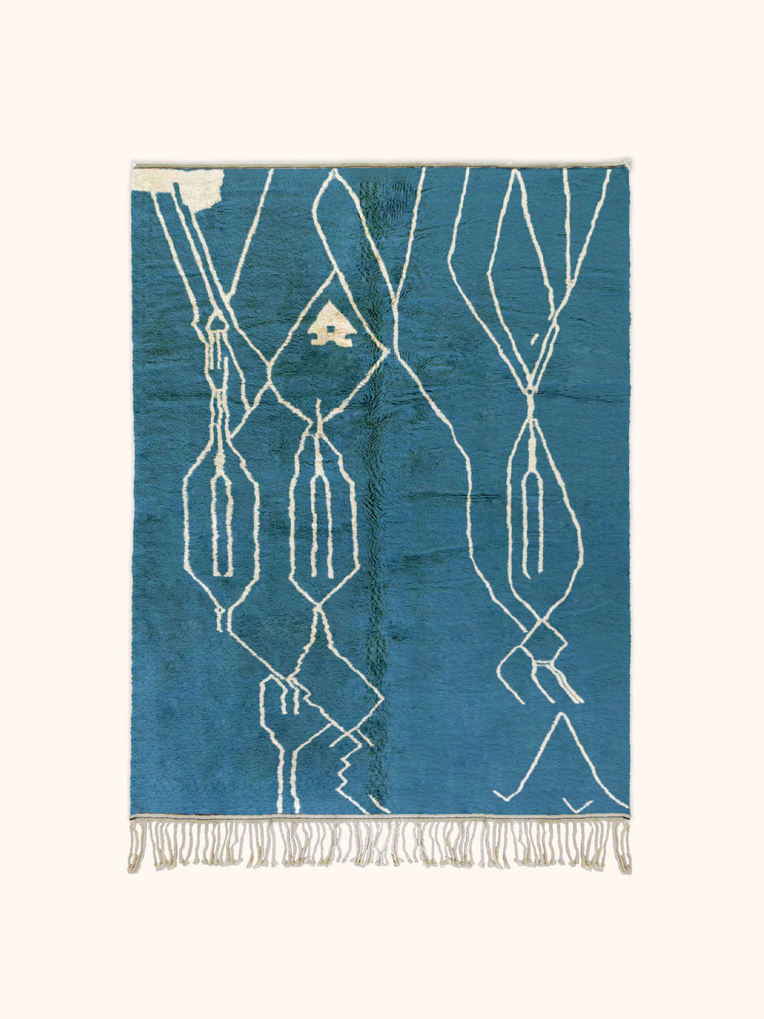 Airy and light, Tilila invites openness. With uncluttered lines and soothing tones, it’s a breath of fresh air—a rug that evokes the wide skies and wild landscapes of the High Atlas.