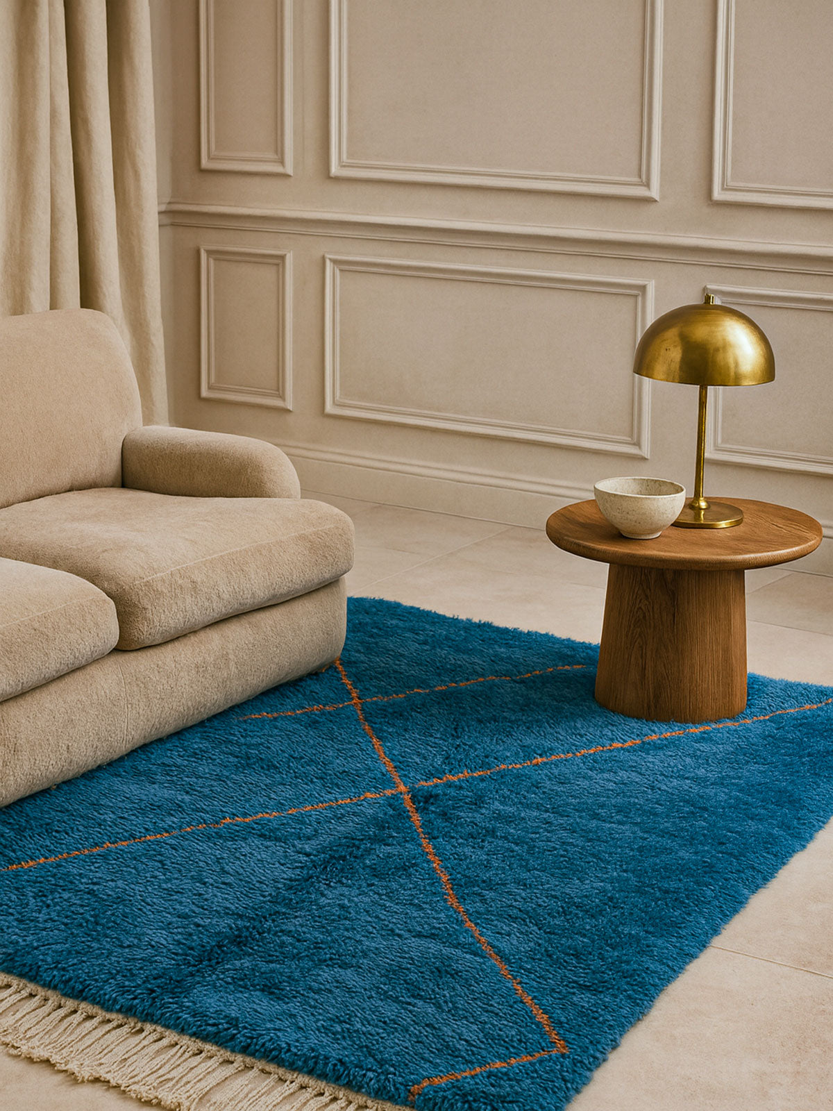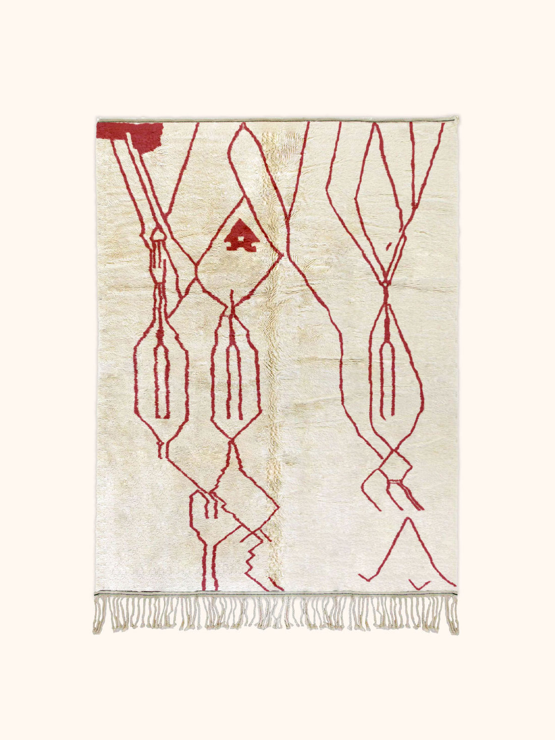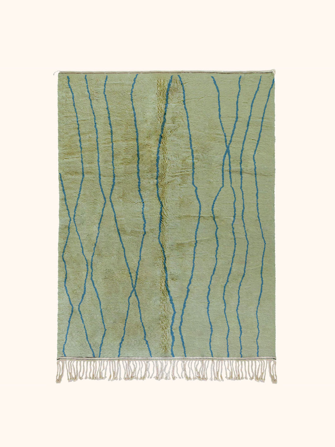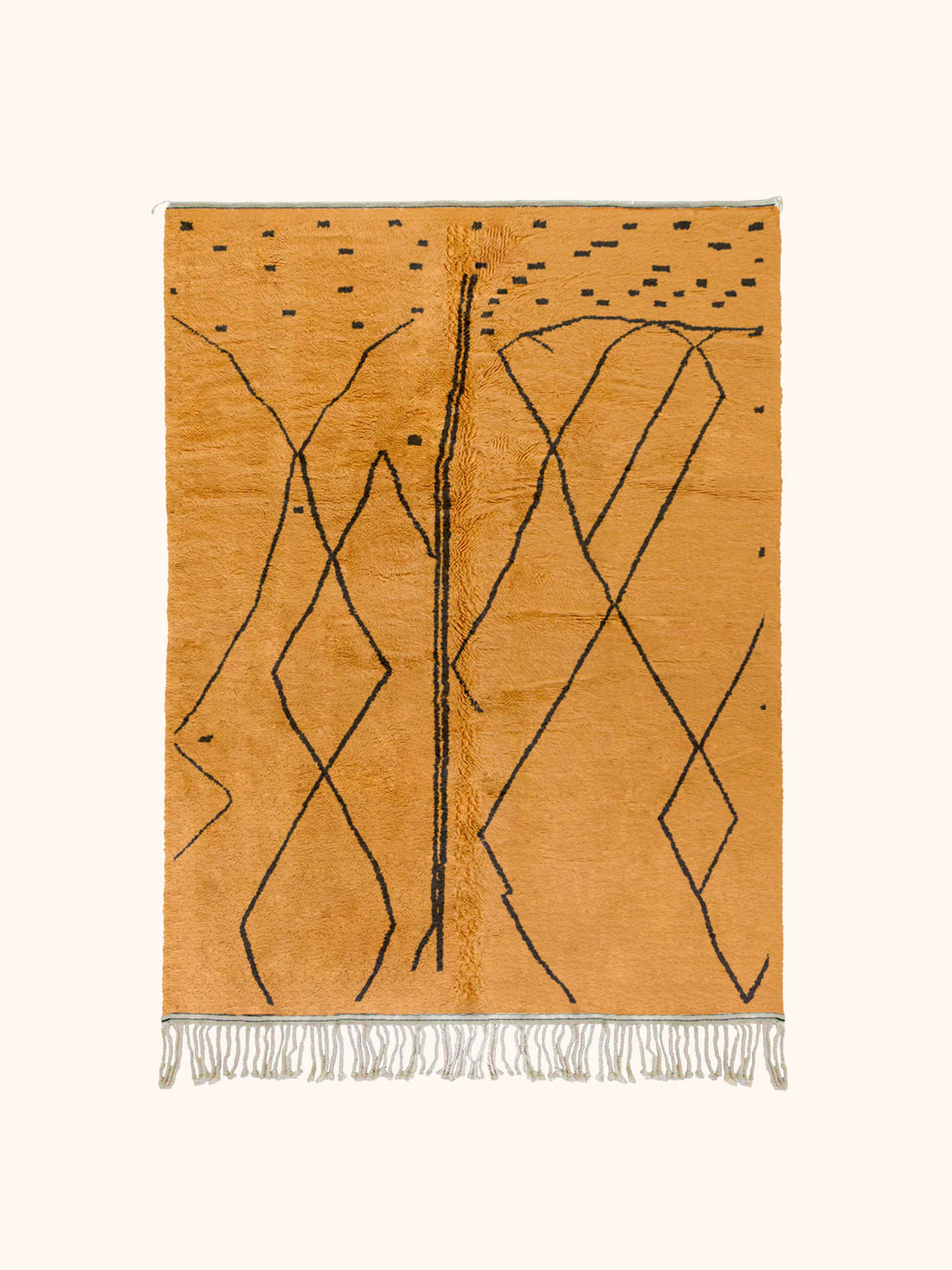 Airy and light, Tilila invites openness. With uncluttered lines and soothing tones, it’s a breath of fresh air—a rug that evokes the wide skies and wild landscapes of the High Atlas.