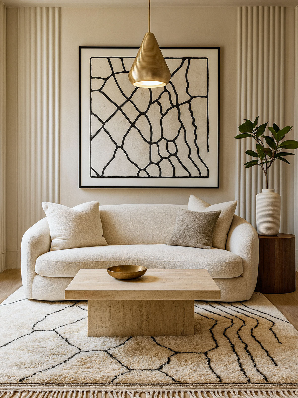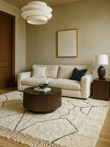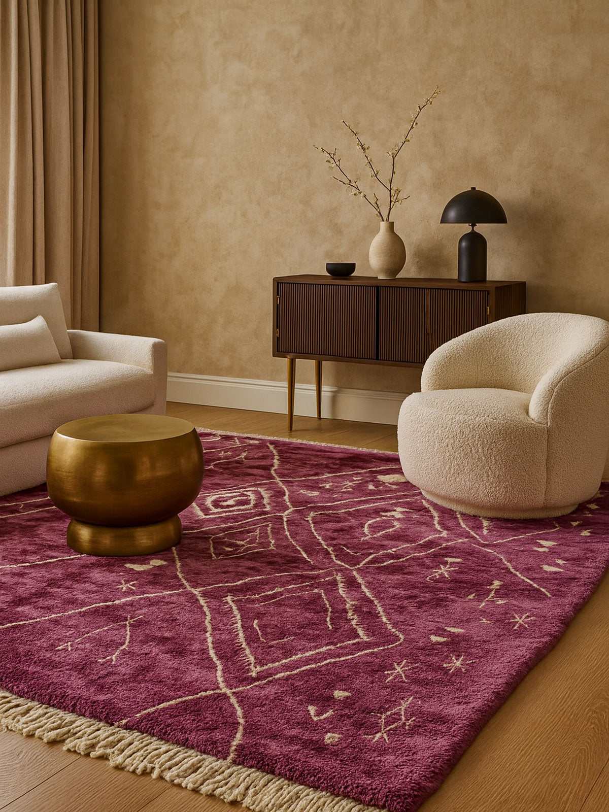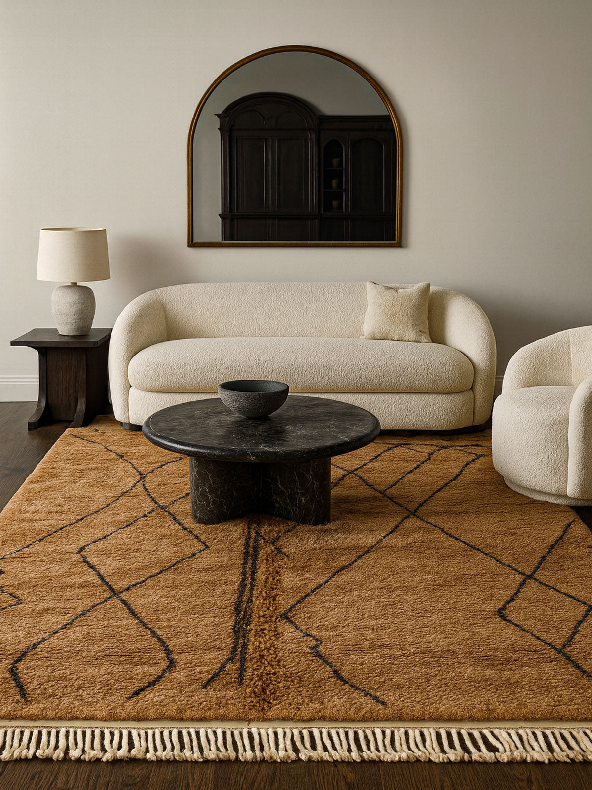 Tasga brings people together. Inspired by village meeting spaces, it combines structured motifs with welcoming warmth—perfect for homes filled with conversation and love.