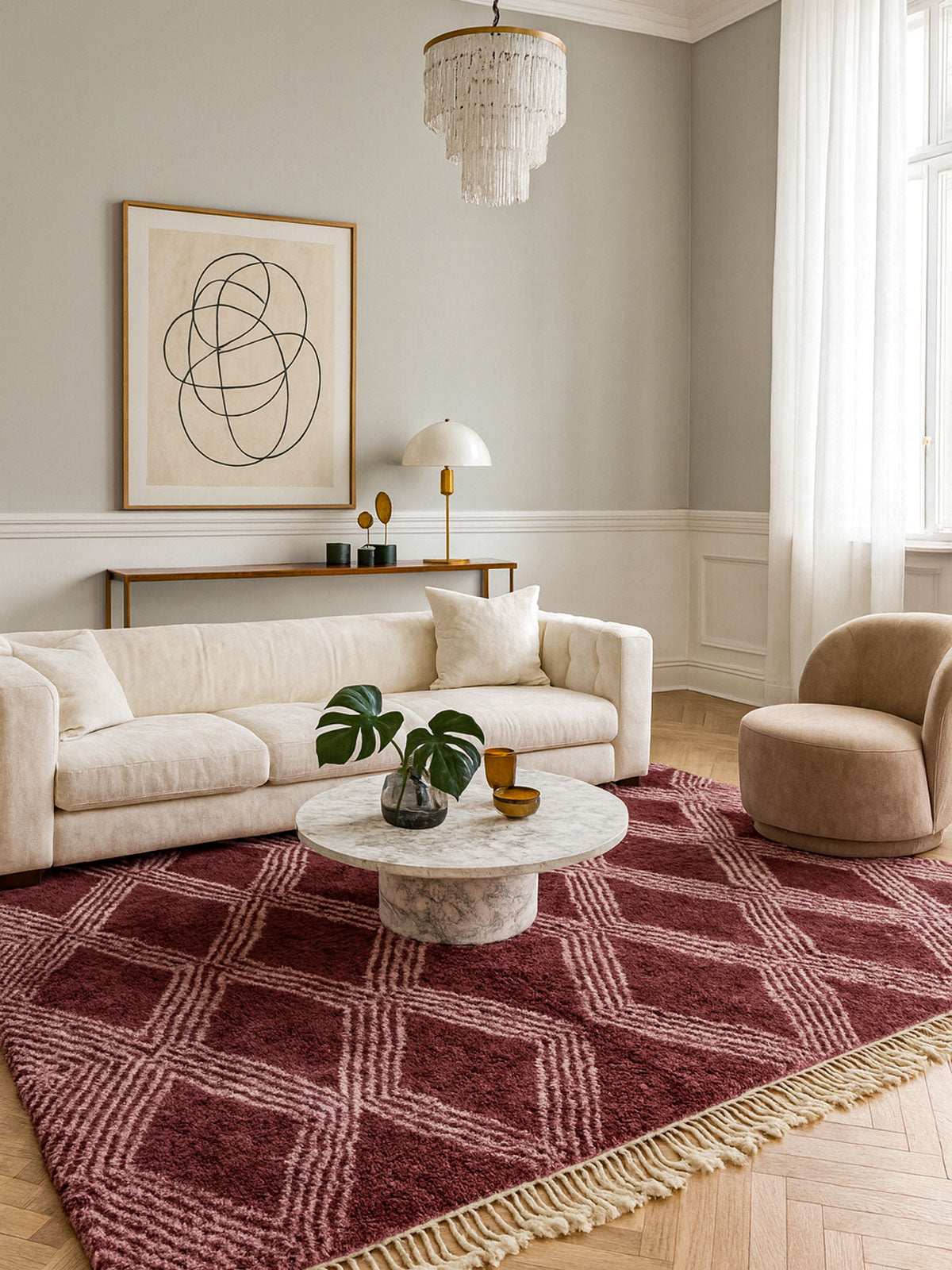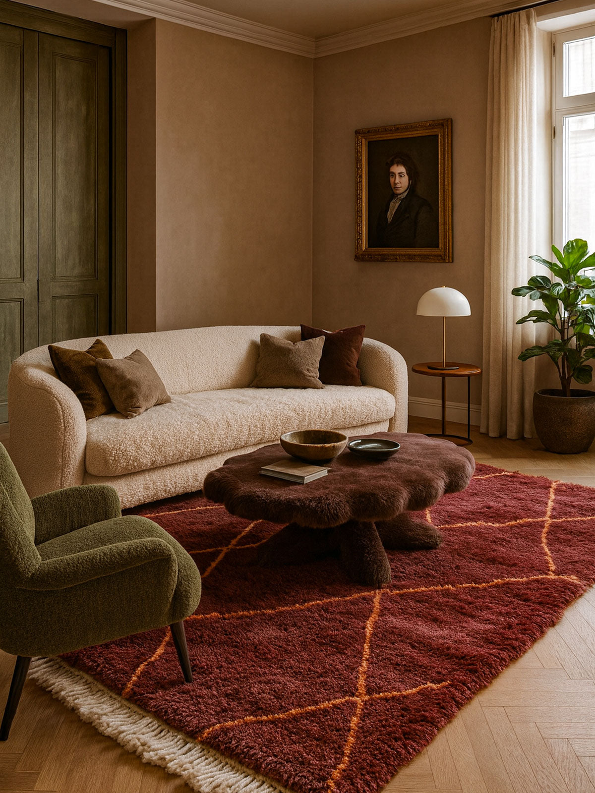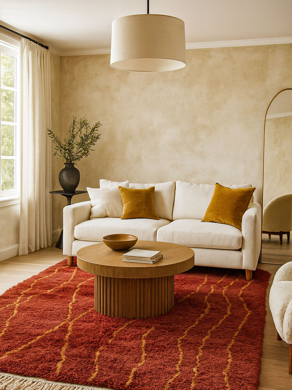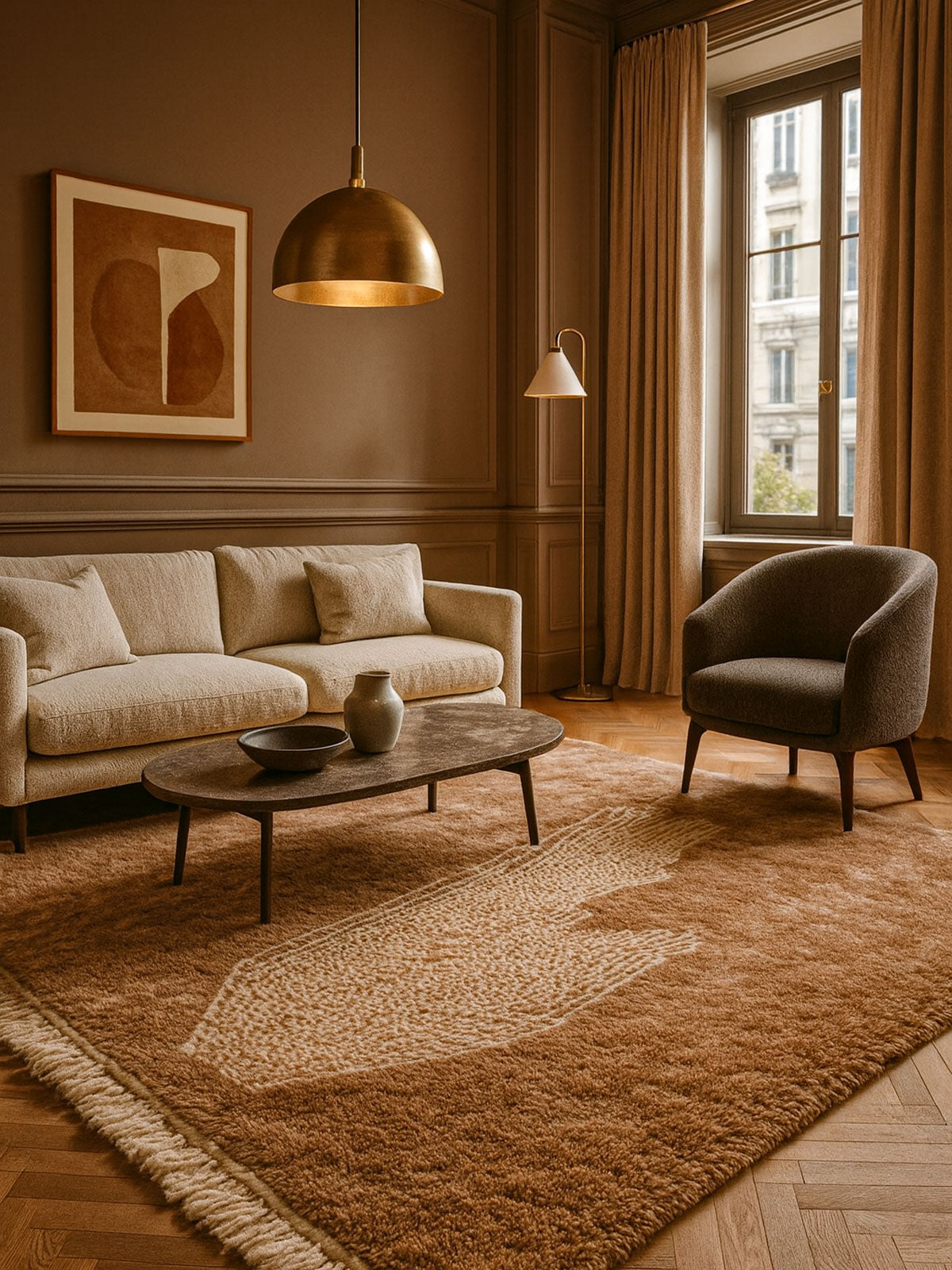 Tasga brings people together. Inspired by village meeting spaces, it combines structured motifs with welcoming warmth—perfect for homes filled with conversation and love.