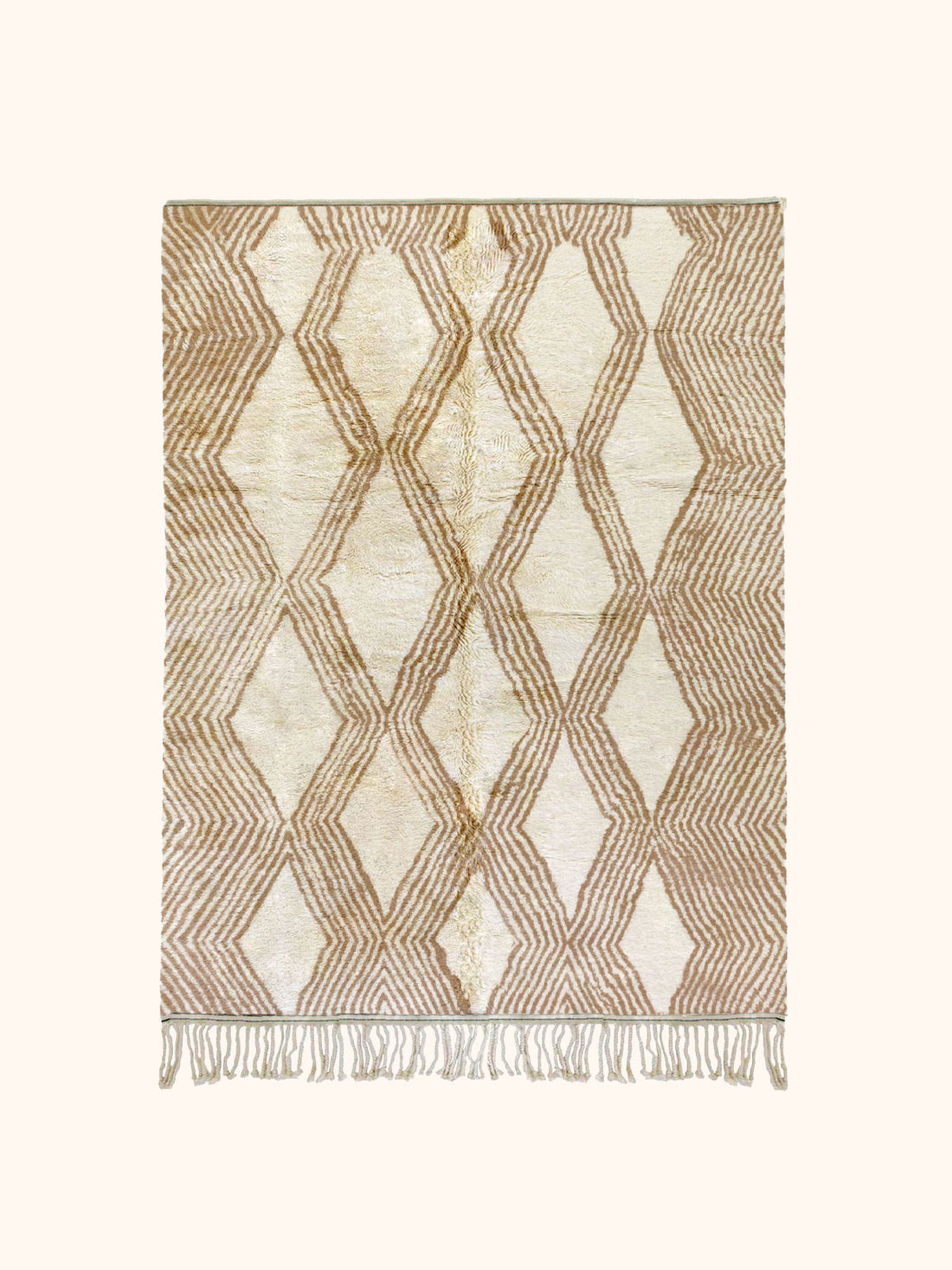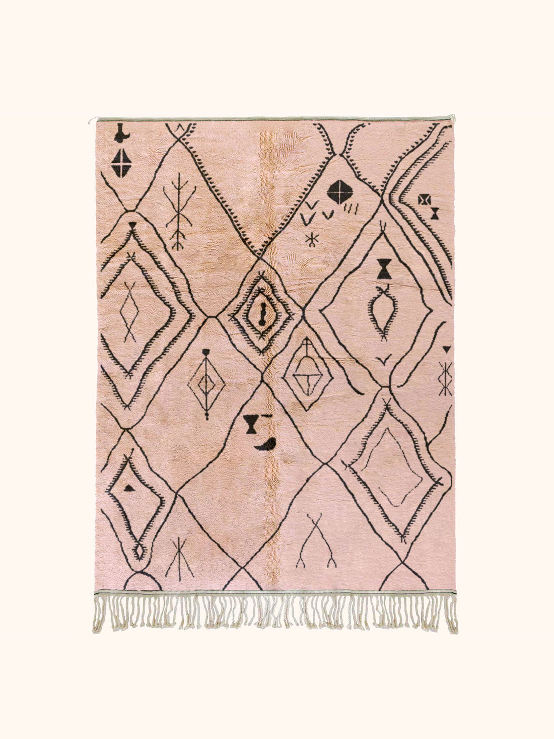 Inspired by the legendary love story of Isli and Tislit, this rug is filled with soft contrasts and delicate patterns—like two souls eternally intertwined.