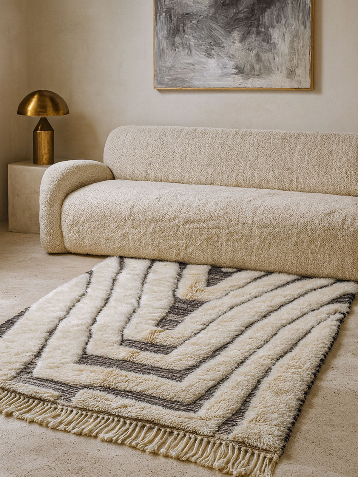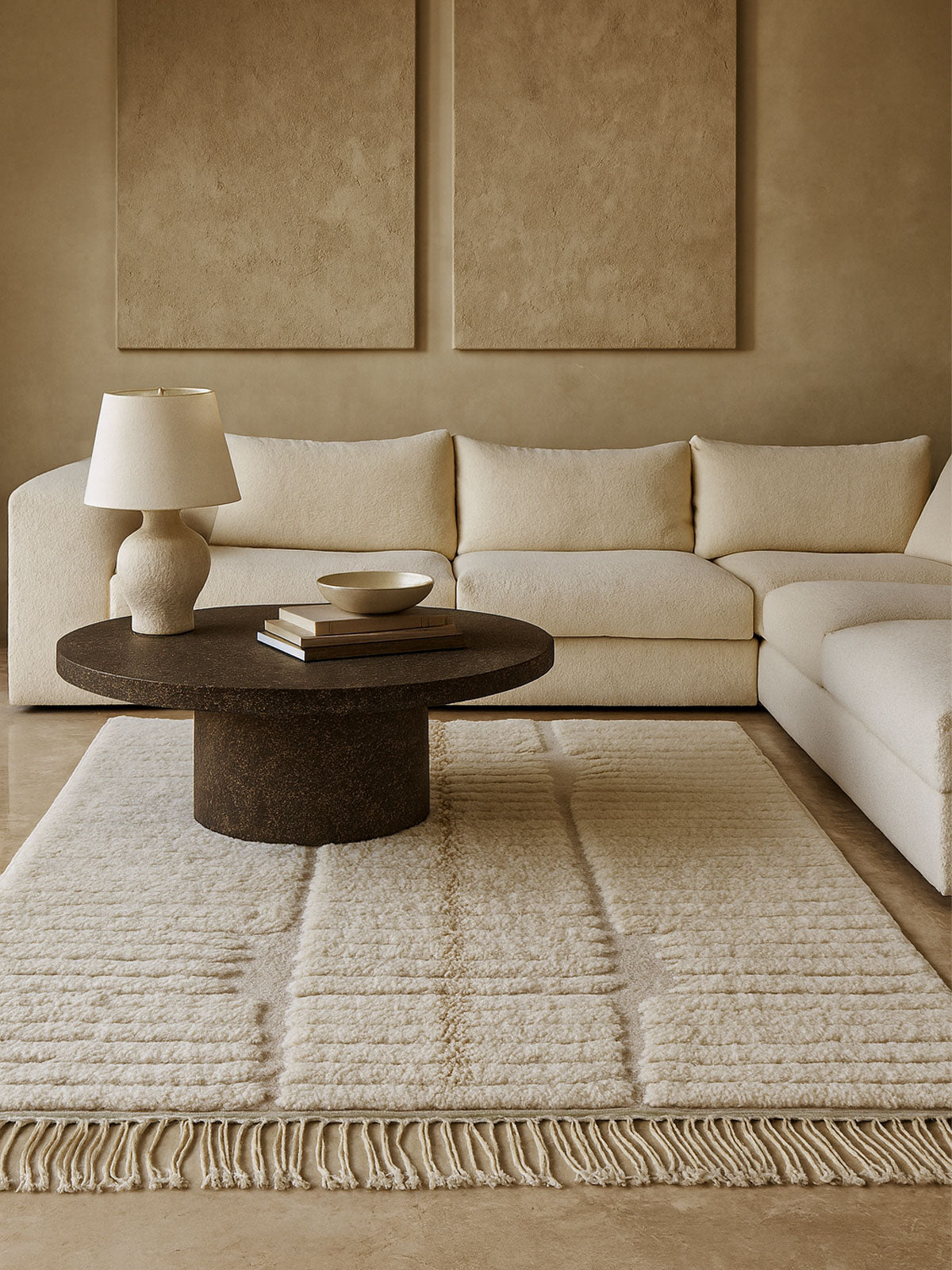 Like the endless waves of sand sculpted by desert winds, Dune features flowing, organic lines that capture the movement of the Sahara. Subtle yet bold, this rug is a tribute to the ever-shifting beauty of the desert.