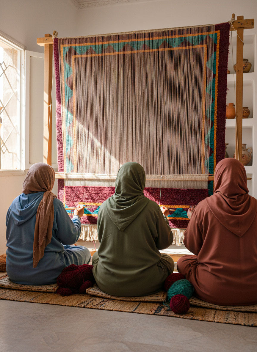 This phase captures the heartbeat of our rugs—the skilled hands of our artisans weaving intricate patterns using age-old techniques passed down from mother to daughter in the Atlas Mountains.