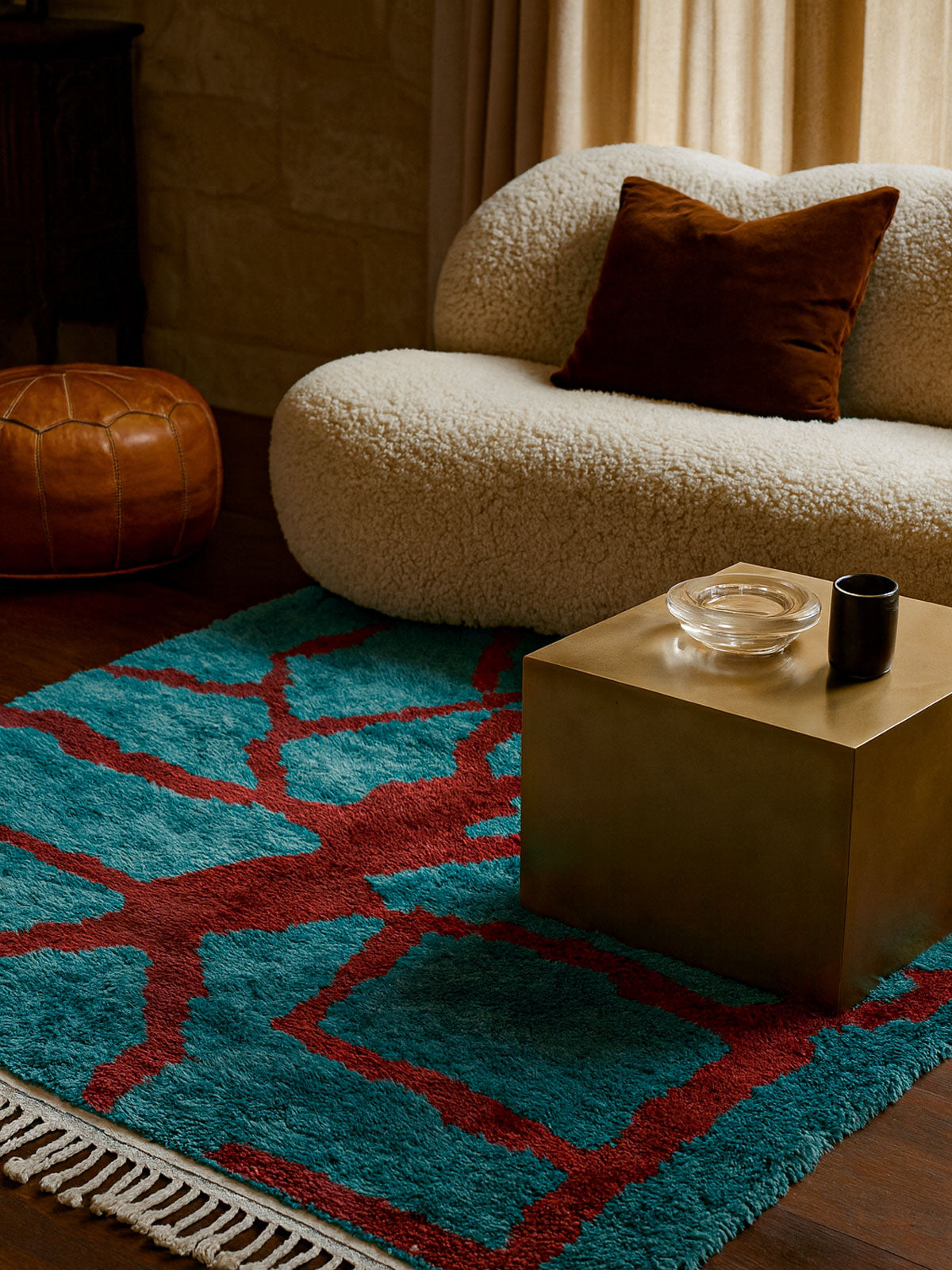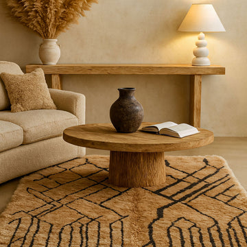 We use 100% natural wool sourced locally in the Atlas Mountains. Dyed with plant-based or mineral pigments, the rugs offer durability, warmth, and an organic look that ages beautifully over time.