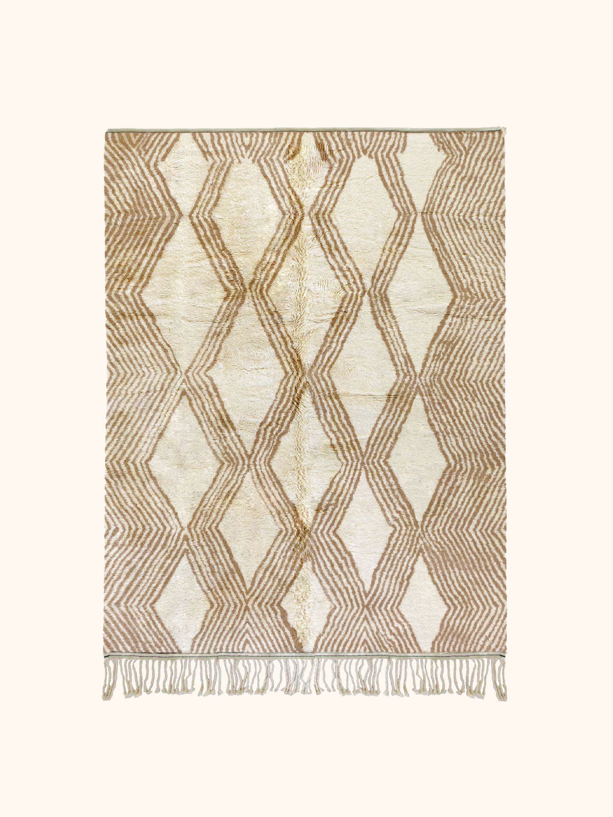 Inspired by the legendary love story of Isli and Tislit, this rug is filled with soft contrasts and delicate patterns—like two souls eternally intertwined.