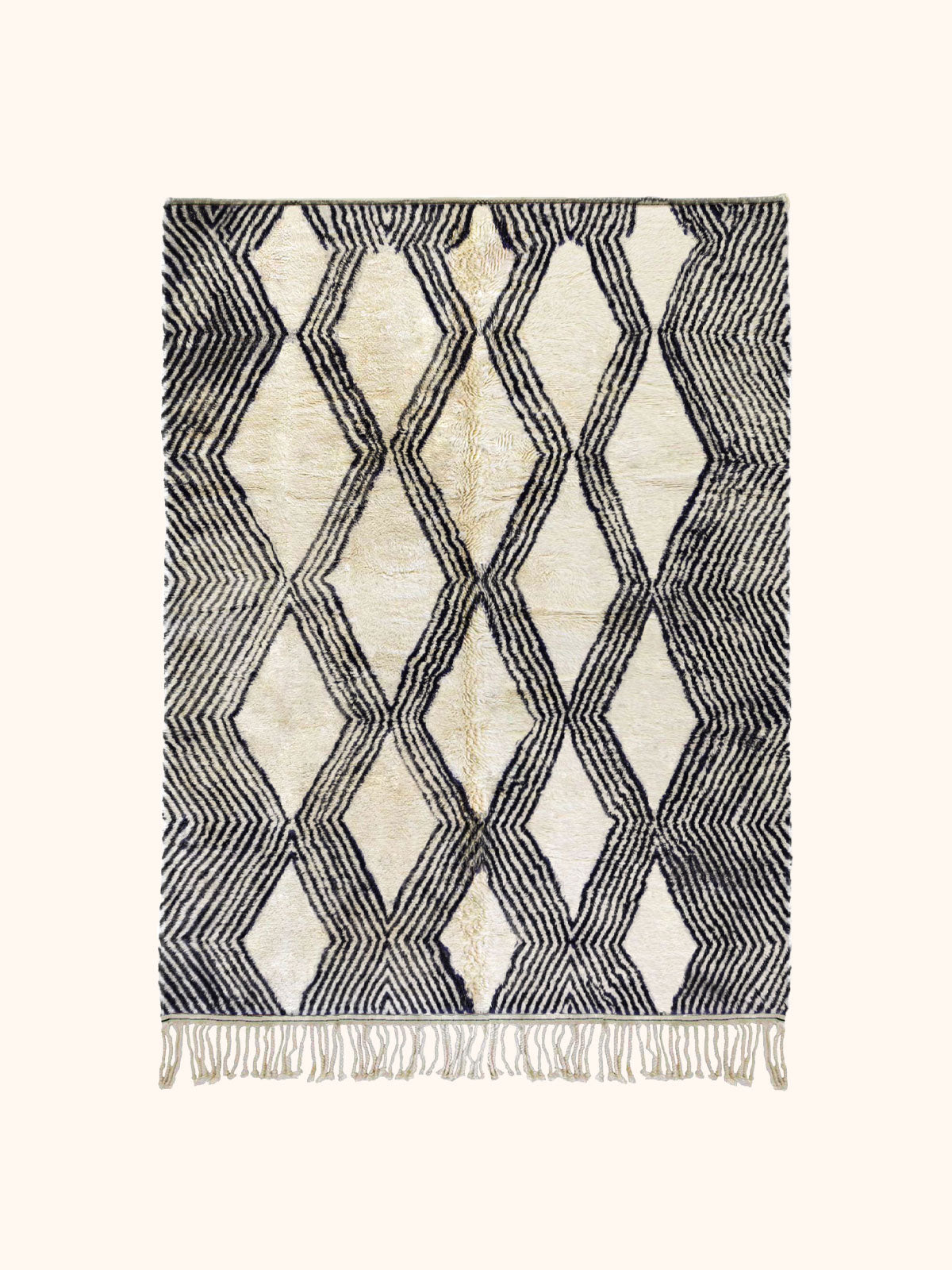 Inspired by the legendary love story of Isli and Tislit, this rug is filled with soft contrasts and delicate patterns—like two souls eternally intertwined.