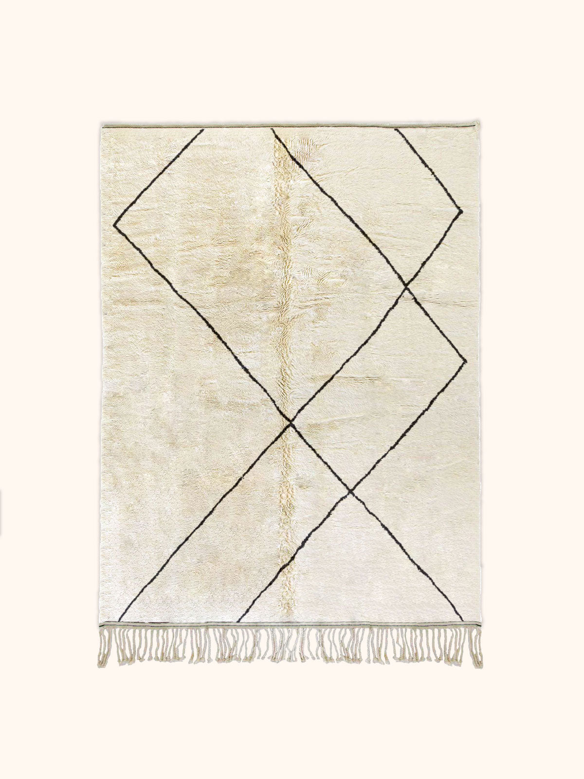 Airy and light, Tilila invites openness. With uncluttered lines and soothing tones, it’s a breath of fresh air—a rug that evokes the wide skies and wild landscapes of the High Atlas.
