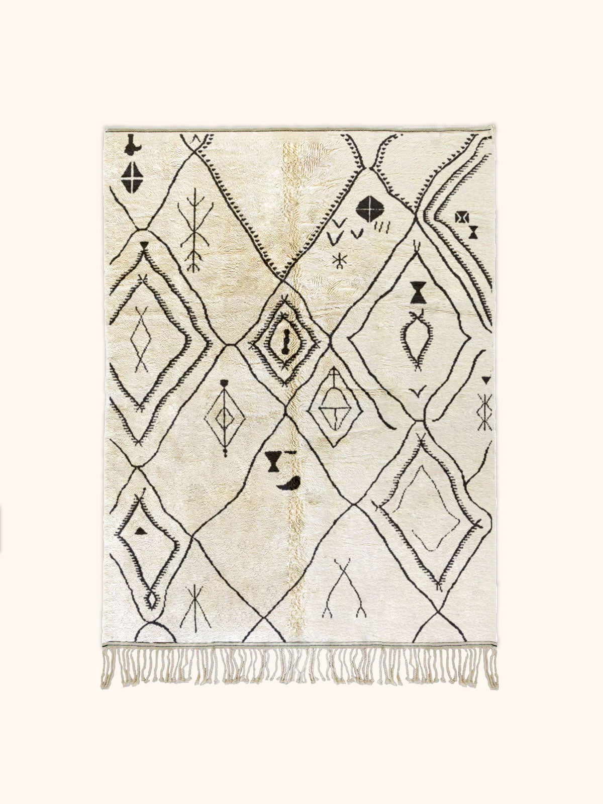 By tradition, Moroccan rugs include tassels on just one end — a nod to generations of craft. You can choose to include them or leave them off, depending on your preference. Tassel length typically ranges from 4" to 6", adding a charming finish to your rug.